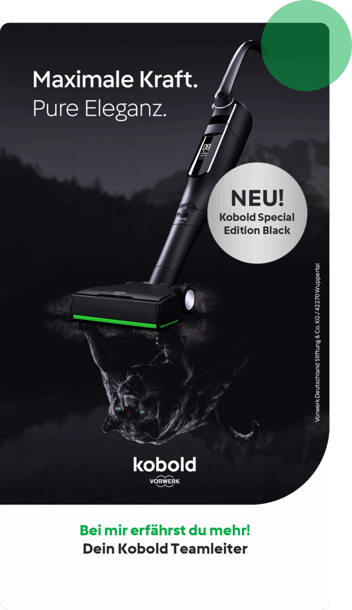 Ich stelle dir die Kobold-Produkte persönlich vor, beantworte deine Fragen und begleite dich bei Auswahl, Kauf und Anwendung.